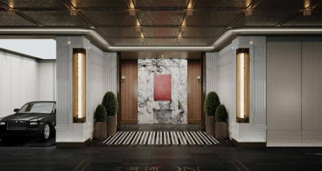 区别于常规豪宅仅以奢石作为点缀,绿城黄浦ONE在多个空间大手笔地采用了整体铺贴的设计